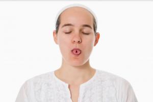 Высуньте язык как можно дальше, подбородок поднимите вверх.