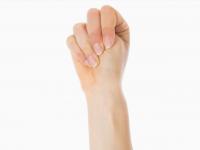 Сожмите кисти в кулаки, большие пальцы зажмите внутри кулаков.