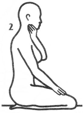 2. Массаж горла. Сядьте на пятки; колени вместе. Мягко помассируйте мышцы горла с обеих сторон. Движения должны быть волнообразными, направленными снизу вверх от ключиц к челюсти. Массируйте ритмичными движениями 2 минуты.