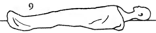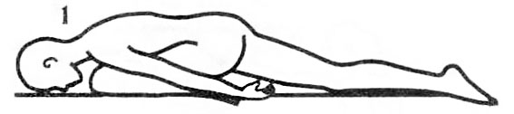 5. Подъемы корпуса из положения лежа с широко разведенными ногами. Лягте на спину, разведите ноги как можно шире, но без напряжения. Возьмитесь руками за плечи, так чтобы большие пальцы легли со стороны спины, остальные - спереди; локти лежат на полу. Мысленно исследуйте каждую мышцу своего тела. Затем очень медленно, поочередно напрягая мышцы, сядьте и наклонитесь корпусом вперед, коснувшись лбом пола. Оставайтесь в таком положении 3 минуты, дыхание произвольное. Затем сделайте глубокий вдох и лягте на спину. Расслабьтесь.