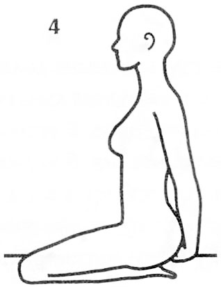 4. Повороты корпуса. Продолжайте сидеть на пятках. Закончив выполнять предыдущее упражнение, сразу заведите руки за поясницу. Сомкните пальцы в замок Венеры. Спина прямая. Сделайте глубокий вдох и повернитесь корпусом влево, на выдохе - повернитесь вправо. Двигайтесь в среднем темпе, доводя повороты до конца. Продолжайте 3 минуты. В конце сделайте вдох, выполните мулабандху, сосредоточьте внимание на позвоночнике по всей его длине. Представьте себе поток энергии, который поднимается вверх по центральному каналу позвоночника, отчего все тело расслабляется и обновляется. Затем сдетайте выдох и расслабьтесь.